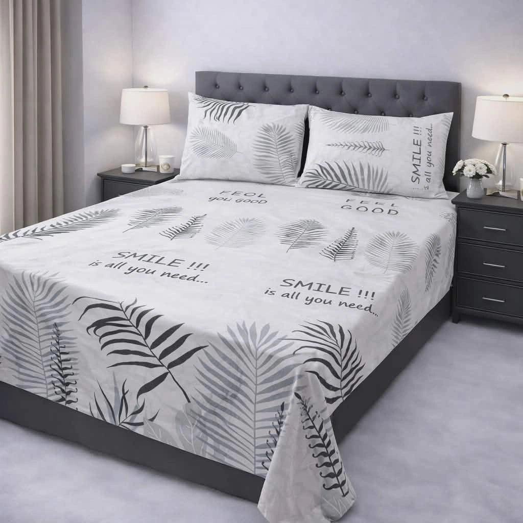 Grey Tropical Leaf Bedsheet